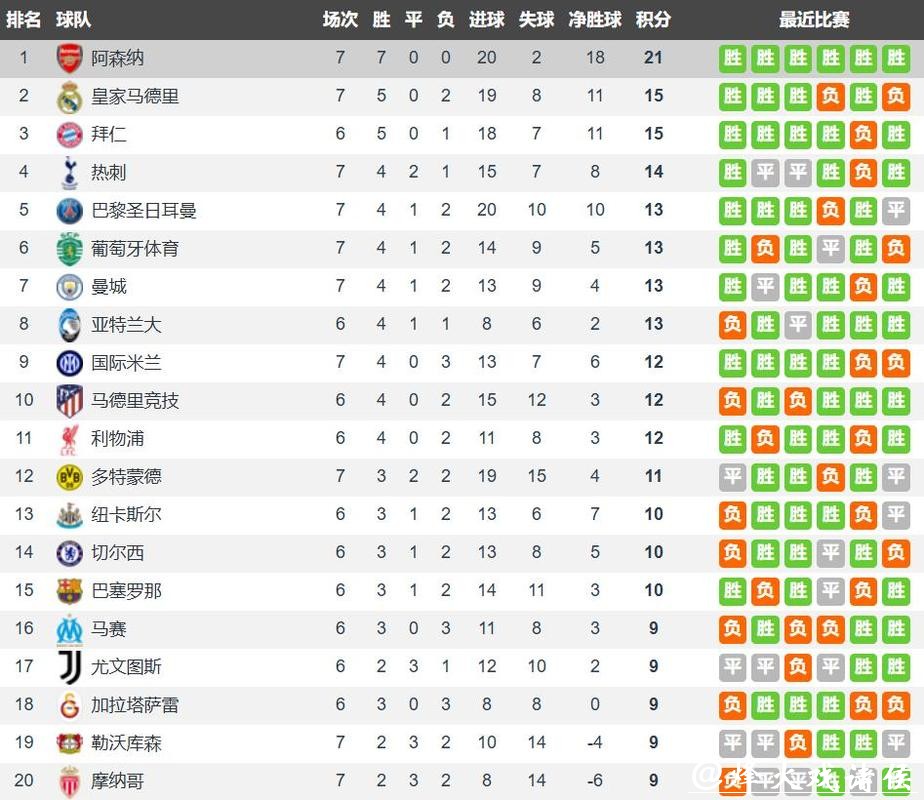 英超是欧冠第1战力 阿森纳是唯一晋级淘汰赛 西甲1队+新军已出局